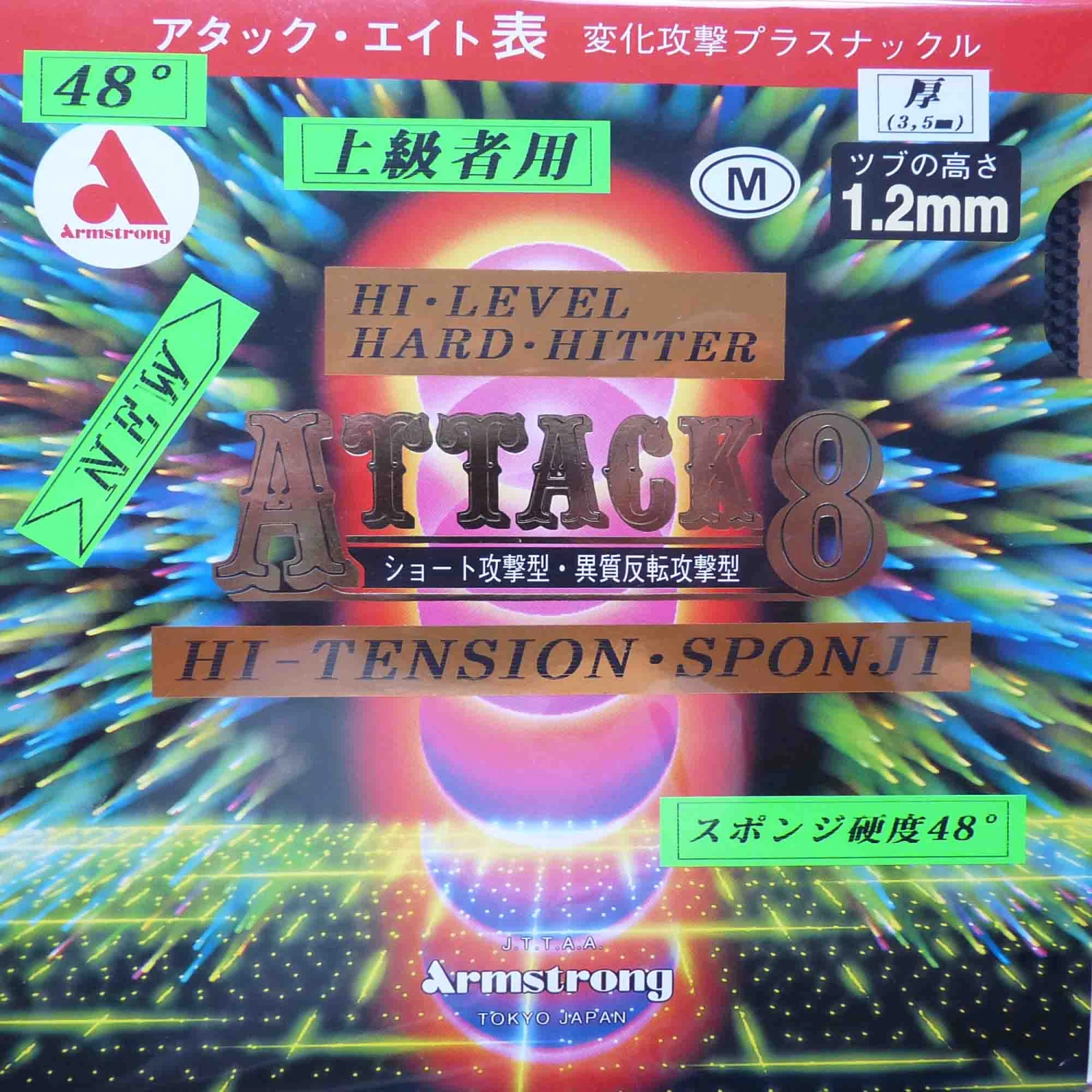 Hochwertigste Armstrong-Technologie, ausgestattet mit besten Qualitätsschwämmen, die sich von anderen Schwämmen spürbar unterscheiden, machen diesen Belag unvergleichbar. Die Noppen des Attack 8 haben eine leicht über dem Durchschnitt liegende Noppenlänge. Dadurch ist es sehr einfach, höhere Topspins sowie Unterschnittbälle gefährlich zum Punktgewinn auf die gegnerische Hälfte zu bringen.