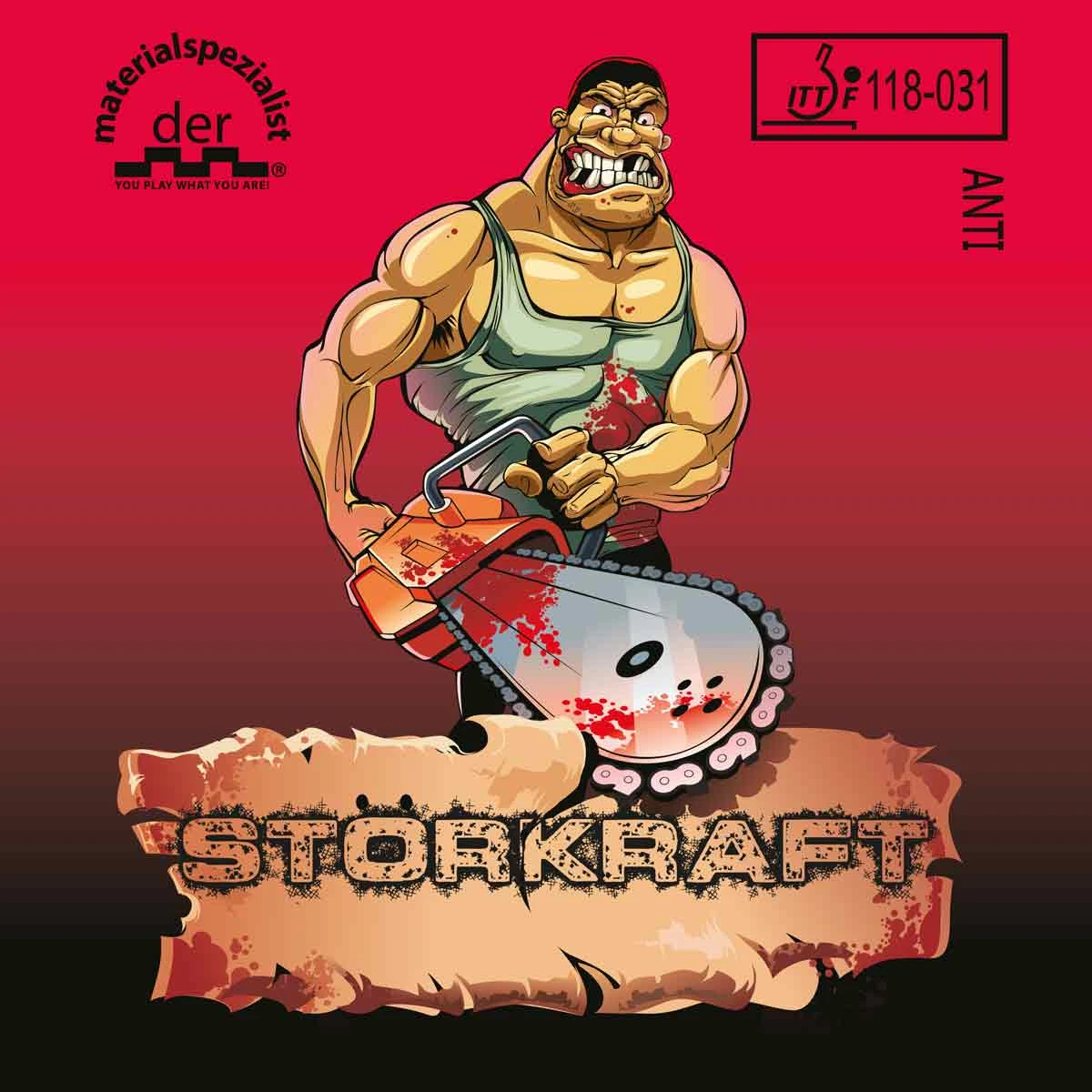 Mit dem STÖRKRAFT ANTI hat der-materialspezialist einen weiteren sehr gefährlichen Störbelag entwickelt. Hierbei wurde ein neu entwickeltes, extrem hartes und sensationell glattes Obergummi, mit einem sehr weichem, revolutionärem neuen Dämpfungsschwamm „Made in Germany“ kombiniert.