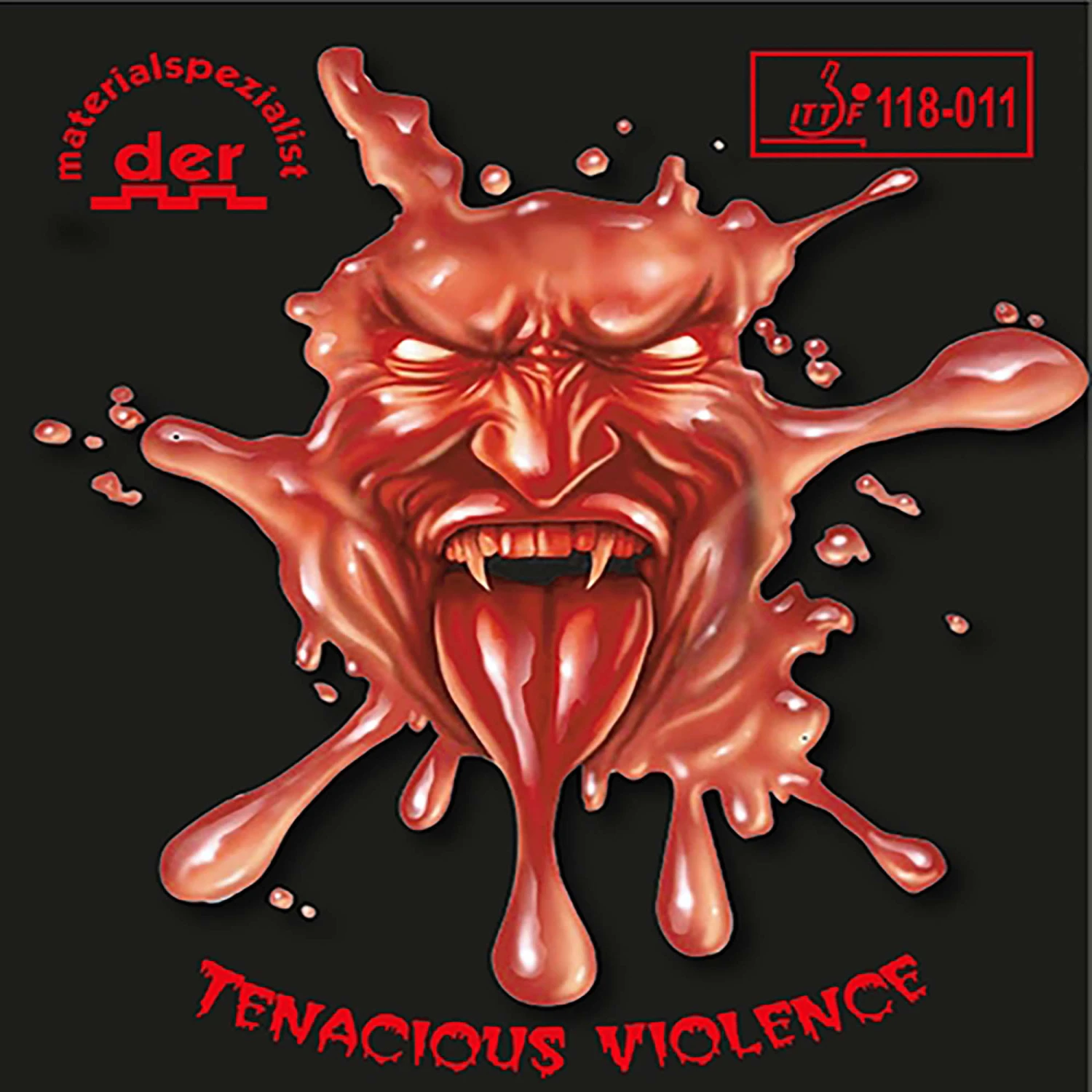 Mit TENACIOUS VIOLENCE präsentiert der-materialspezialist eine völlig neue Belagentwicklung mit herausragenden Spieleigenschaften. Durch die einzigartige Kombination aus dem neuen Hightech Schwamm und dem extrem Spin orientiertem Obergummi ist eine neue Belag Sensation entstanden. Das Obergummi mit seiner einzigartigen nach innen gerichteter Noppenstruktur verleiht dem Belag größtmögliche Effektivität und ein fantastisches Spielgefühl. Insbesondere im Topspinspiel überzeugt TENACIOUS VIOLENCE durch seine einmalige Dynamik und ermöglicht hierbei maximale Rotation bei höchsten Katapultwerten und perfekten Kontrolleigenschaften.