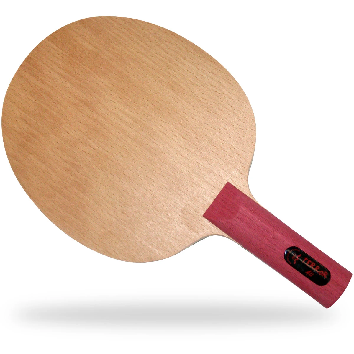 TERROR zeichnet sich durch ein perfektes Block-und Konter-Verhalten aus und ist für den modernen allround orientierten Störspieler entwickelt worden. Durch seinen einzigartigen Furnieraufbau produziert auch dieses Holz ein Höchstmaß an Schnittumkehr und Störeffekt beim Einsatz von Noppen außen oder Anti Spin Belägen. Hierbei wird insbesondere beim Blocken ein sehr flacher und kurzer Ballabsprung erreicht, der den nächsten Spielzug des Gegners stark erschwert. Zudem bietet TERROR ausreichend offensiv Optionen für Angriffsbälle wie Topspin und Schuss und ermöglicht dank überragendem Spielgefühl und perfekter Ballrückmeldung höchste Kontrollwerte.
