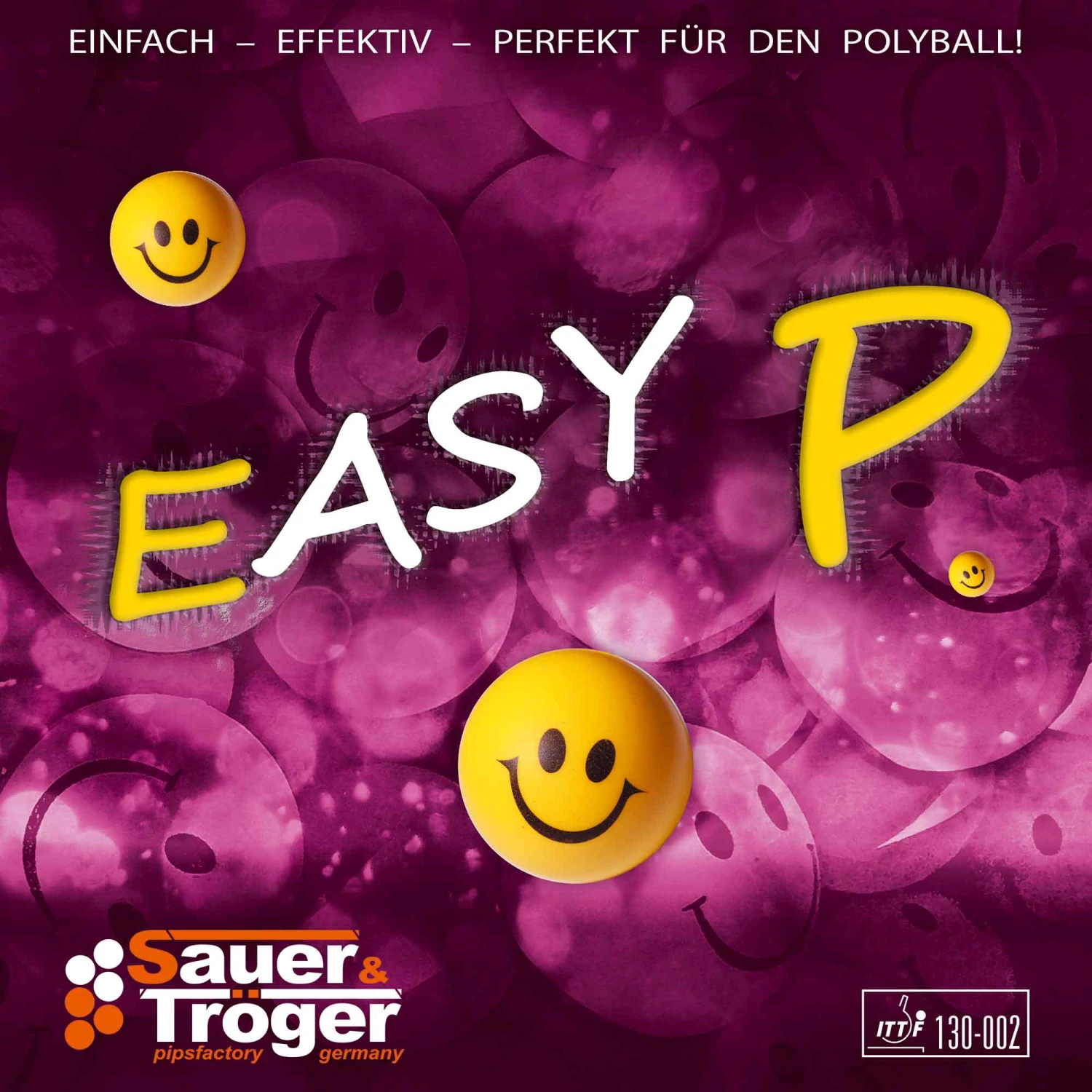 Nach unserer überaus erfolgreichen Markteinführung von Belägen speziell für Materialspieler sind wir stolz darauf, dass wir mit dem Easy P eine weitere lange Noppe vorstellen können, die neue Maßstäbe beim tischnahen Langnoppen-Spiel setzen wird. Bei der Entwicklung des Easy P lag der Fokus darauf, eine neue „Leichtspielnoppe“ mit maximaler Gefährlichkeit zu entwickeln, die nah am Tisch gespielt werden kann. Durch ein spezielles Fertigungsverfahren der Noppenköpfe verfügt der Easy P über ein sehr geringes Tempo. Topspins können früh über dem Tisch abgestochen und teilweise schon im Aufsteigen des Balles retourniert werden. Das reine „Hinhalten“ ist sehr kontrolliert möglich. Hierbei wird der Gegner mit einer exakten Platzierung im Spielfluss gestört. Eine weitere Spezialität ist der Druckschupf auf leere Bälle und Unterschnitt. Durch die maximal mögliche Schnittunempfindlichkeit des Belags kann dies sehr effektiv und erfolgreich eingesetzt werden.